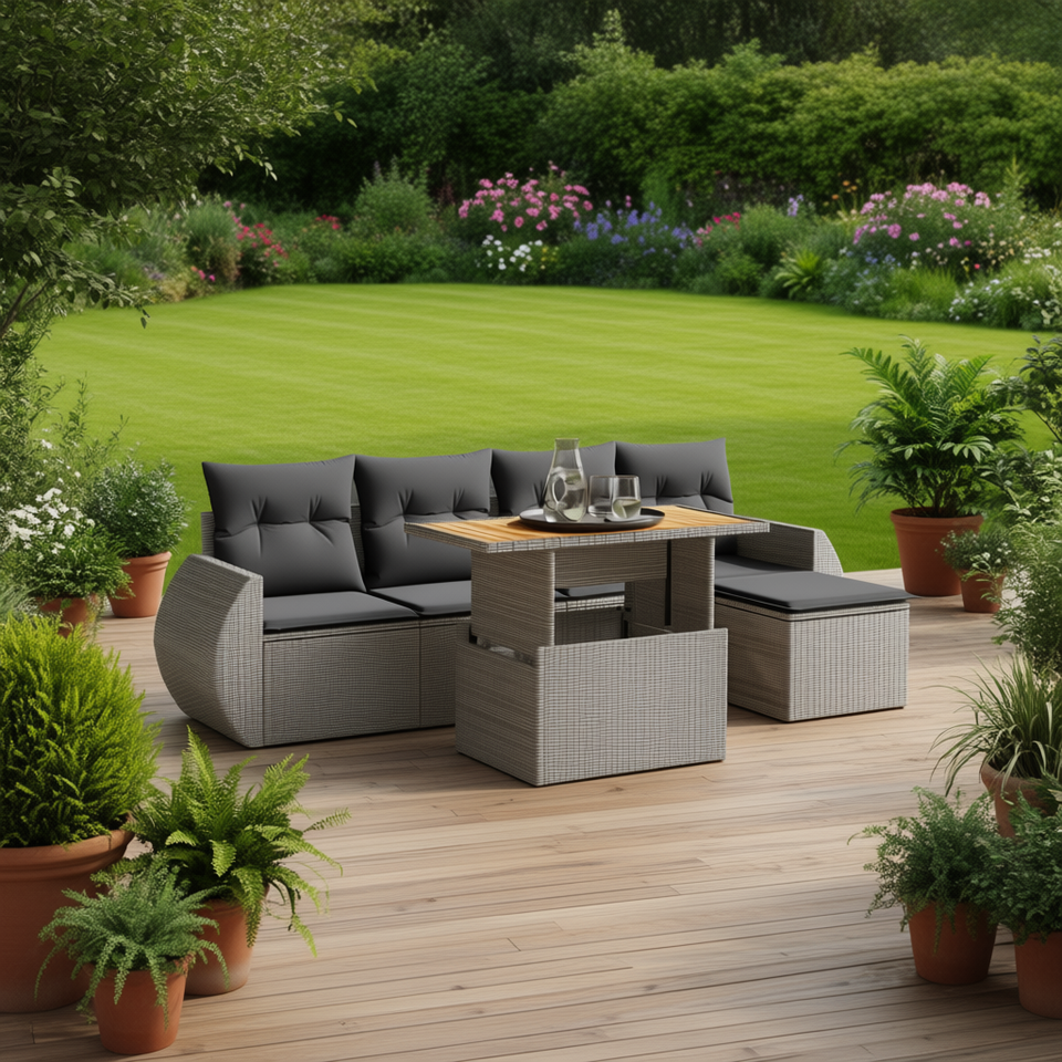 Grand ensemble de canapés de jardin en rotin PE gris avec coussins en mousse haute densité, mobilier d'extérieur au design contemporain