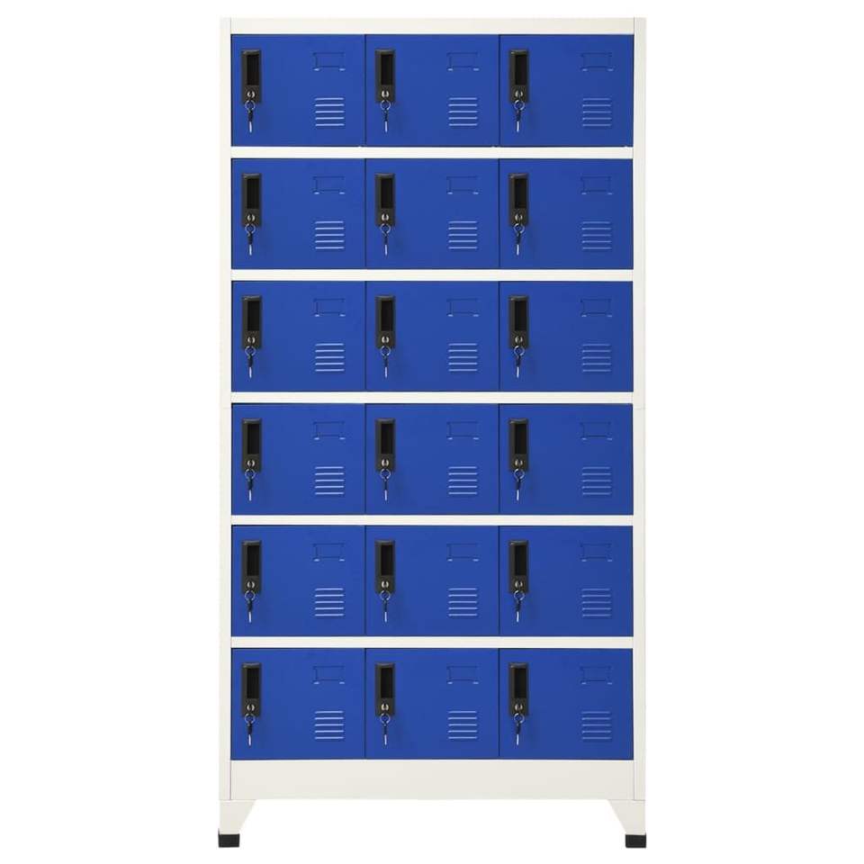 Armoire de rangement en acier moderne bleu gris 6 niveaux avec serrures, solution de rangement pour garage ou bureau