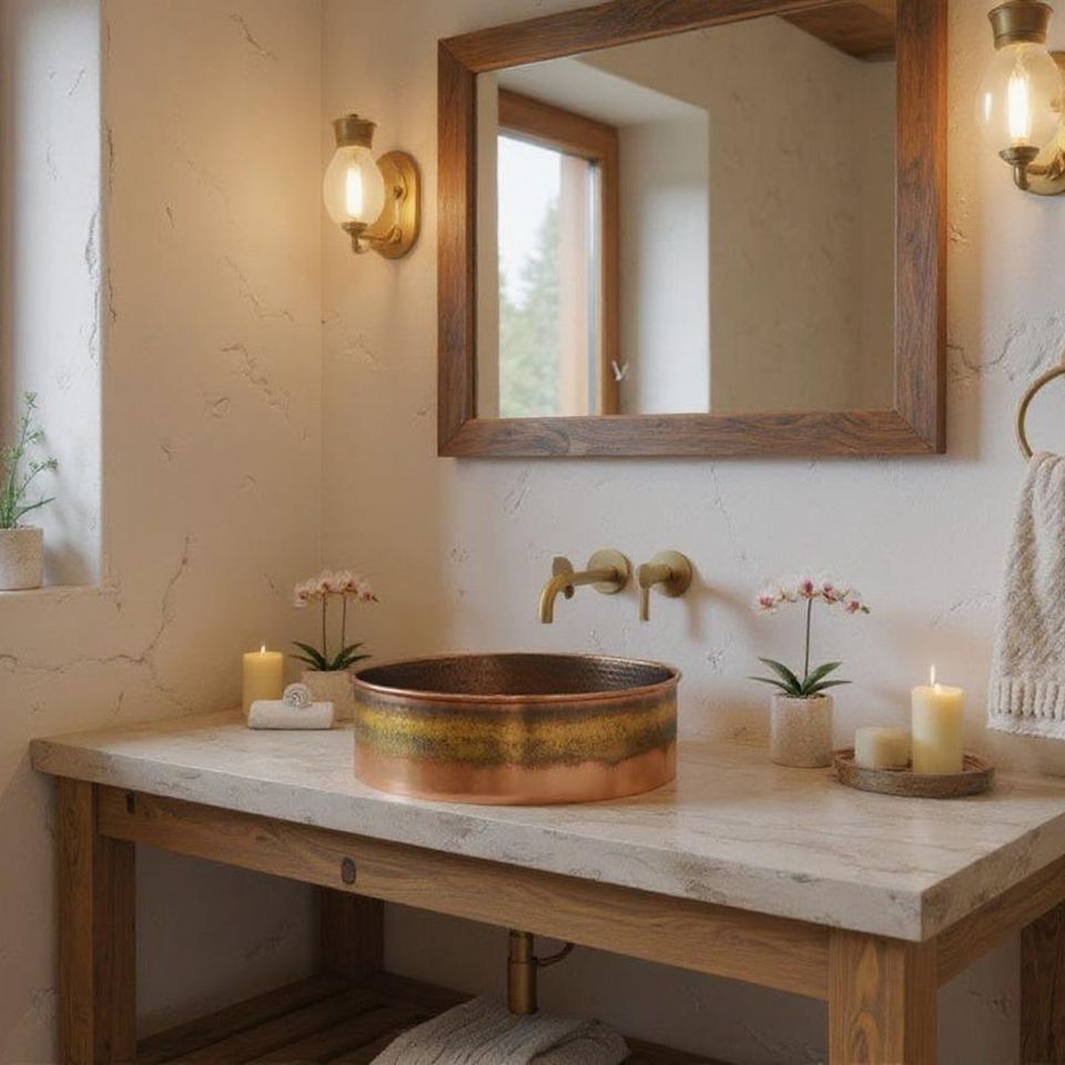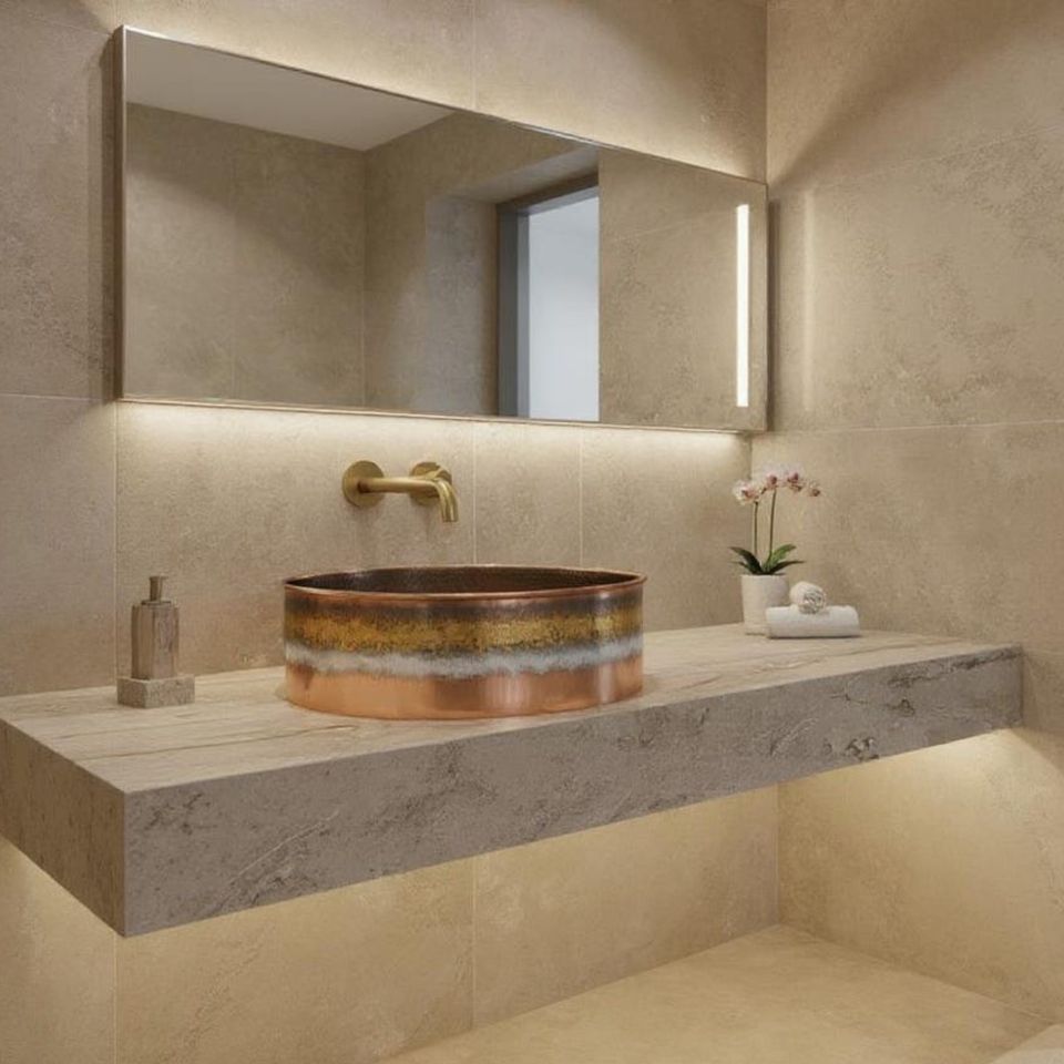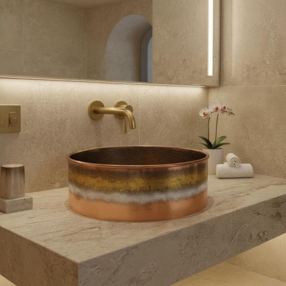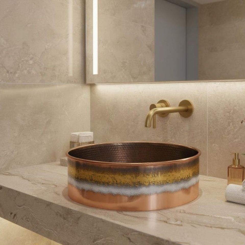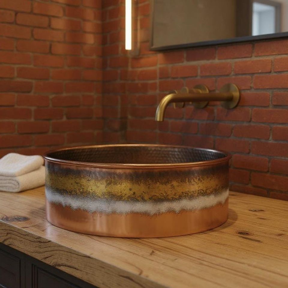 Grand lavabo vasque simple en cuivre martelé, finition satinée brossée, de luxe moderne, fait main, pour salle de bain