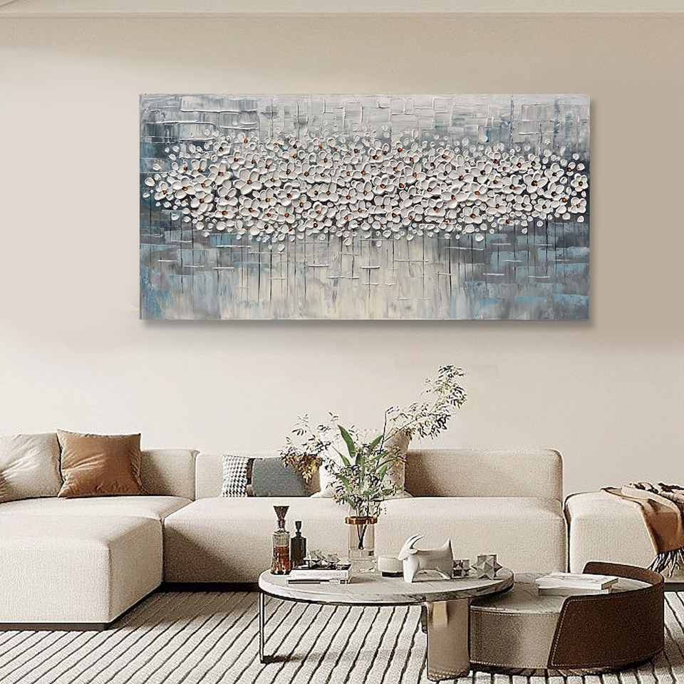 Grand Couteau à Fleurs Abstraites de Cerise en 3D Texturé, Peint à la Main, Peinture Murale Acrylique, Taille Personnalisée, Fleurs à l'Huile