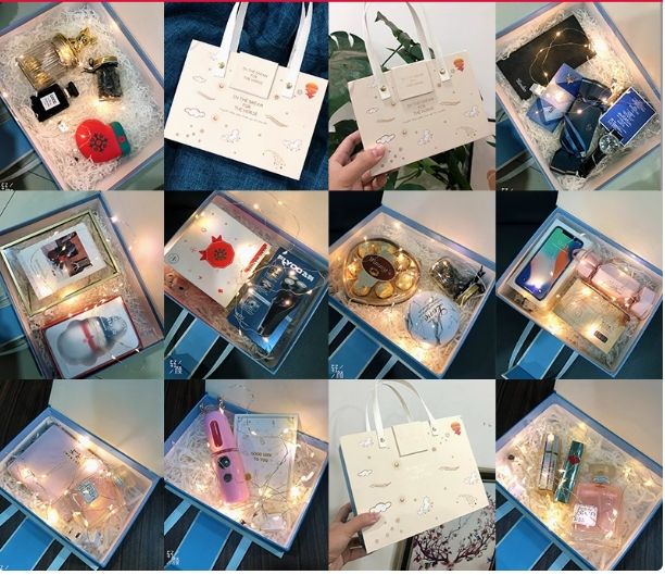 Grande boîte-cadeau portable avec rabat sur le thème du dessin animé Écharpe de rouge à lèvres protégée contre les UV Style rituel sensoriel Instagram