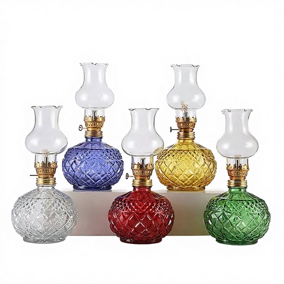 Grande lampe à pétrole rétro artisanale écologique coupe-vent à intensité variable en verre résistant à la chaleur coloré pour la décoration intérieure