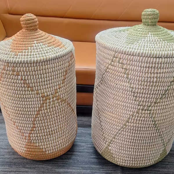 Grand panier de rangement décoratif en jonc de mer fait à la main avec poignées en anneau Organisateur tissé pour le rangement des enfants