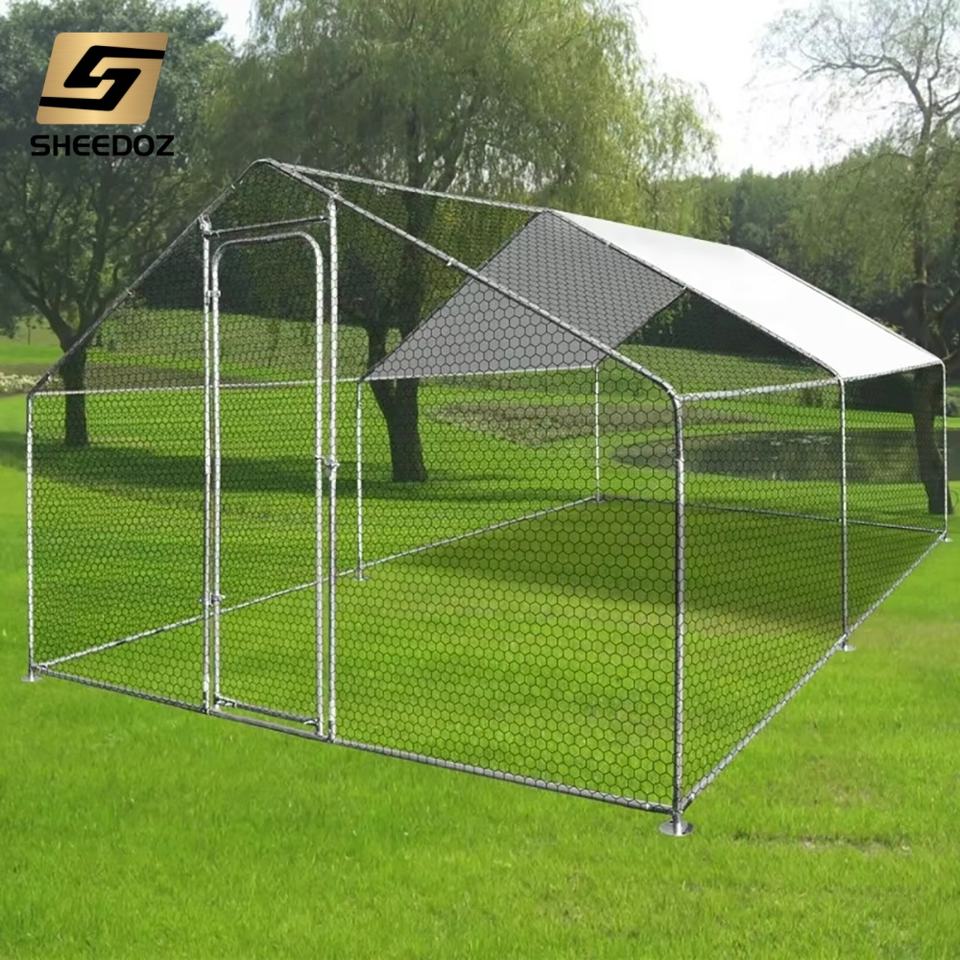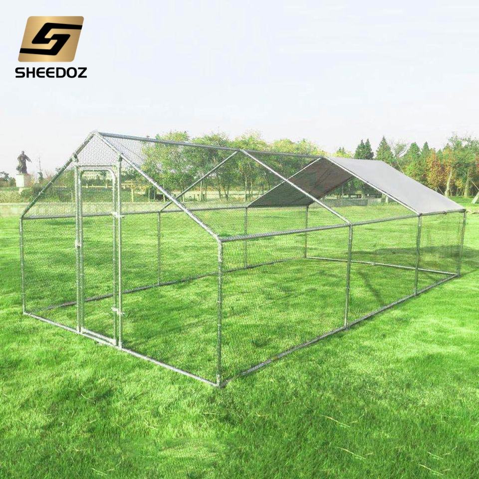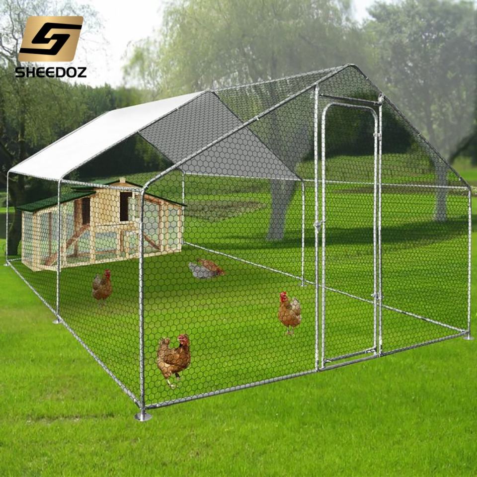 Grand poulailler métallique robuste et mobile pour l'extérieur, avec enclos, compatible tracteur, en promotion
