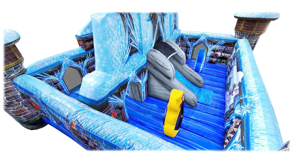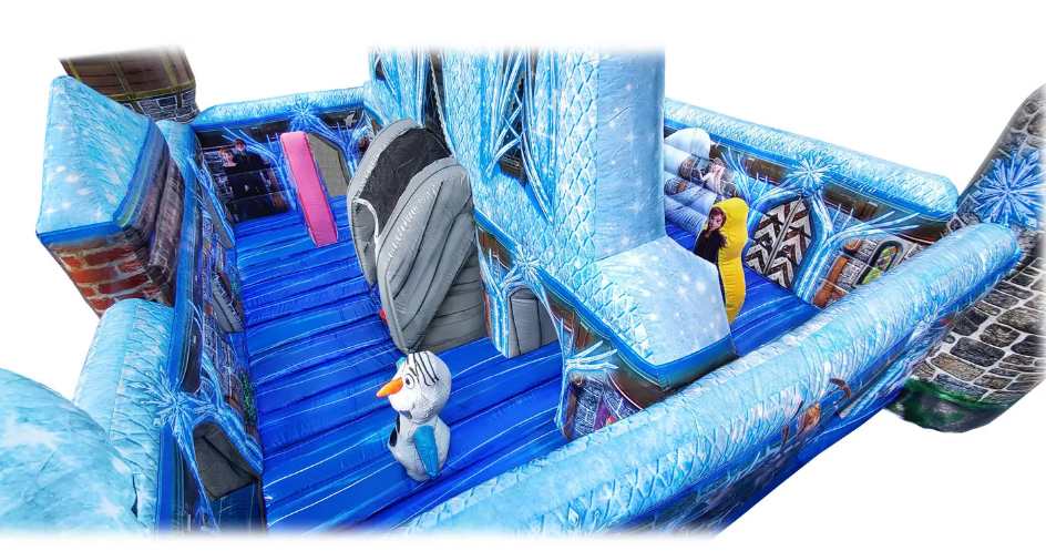 Grande ville de jeux gonflable sur le thème de la Reine des neiges, château gonflable, aire de jeux, parc d'attractions pour tout-petits et enfants