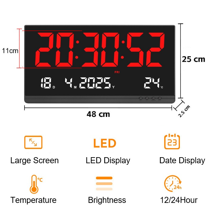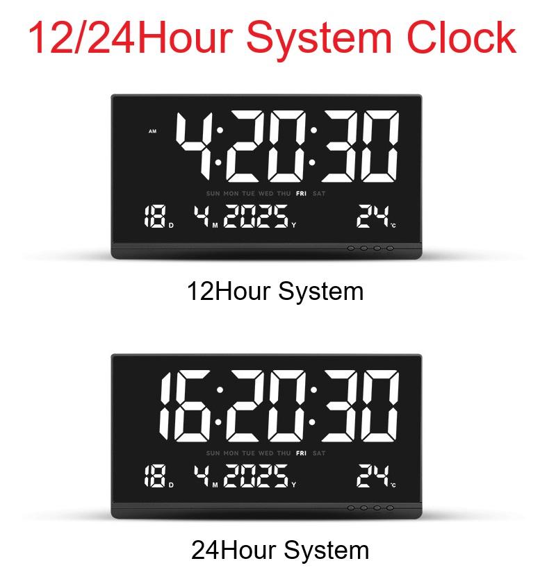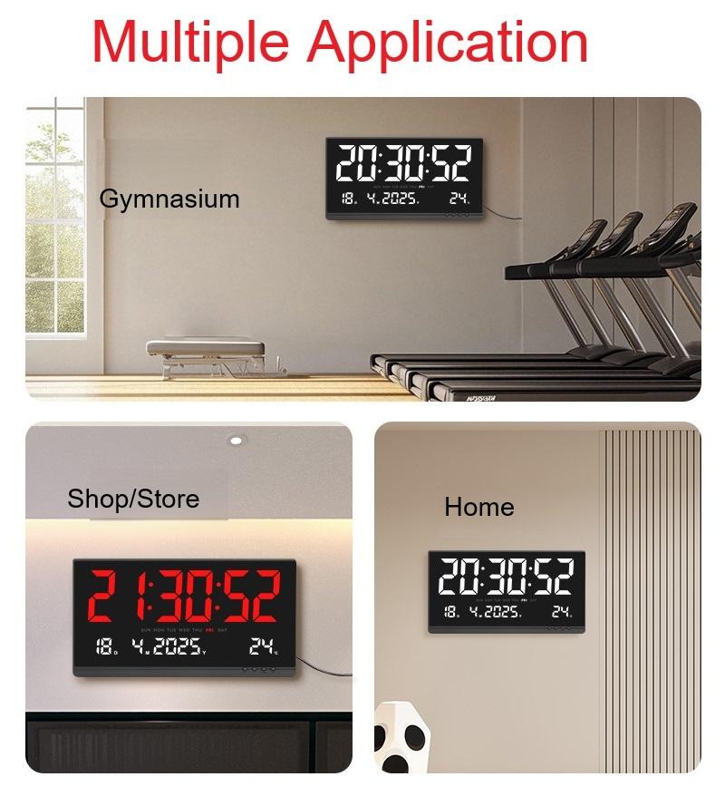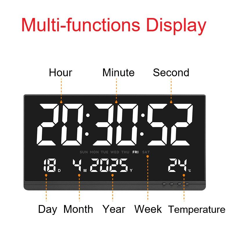 Grand Horloge Murale Numérique Intérieure avec Affichage LED de la Date, du Mois, du Jour, du Week-end et de la Température – Décoration Maison