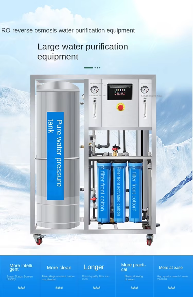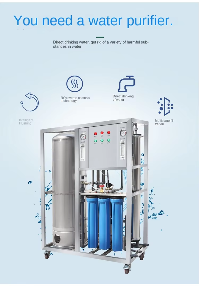 Grand purificateur d'eau potable industriel et commercial à osmose inverse (RO) adoucisseur d'eau 220V 1000L/h 1500W Équipement de traitement 1