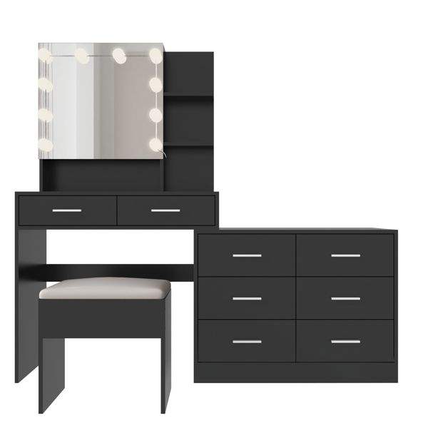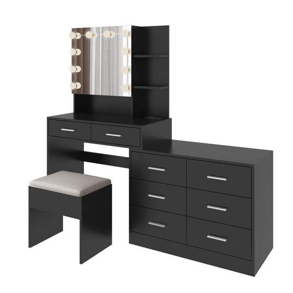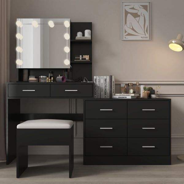 Grande table de maquillage avec éclairage LED et 10 ampoules, station de charge, miroir élégant