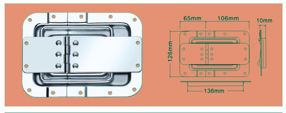 Charnière de bagage avec grand couvercle, pour étui de voyage