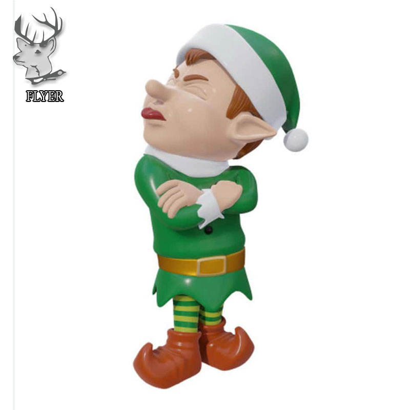 Statue de dessin animé de Noël elfe grandeur nature décor de vacances cadeau d'art en résine Statues en fibre de verre à vendre