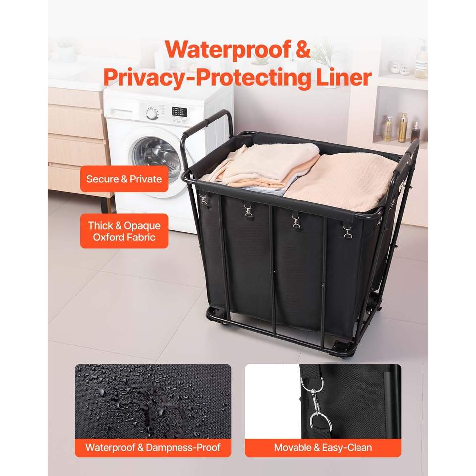 Panier de courses à grande capacité, robuste, 260 LBS, noir, roues pivotantes, chariot utilitaire pour épicerie, linge, doublure imperméable