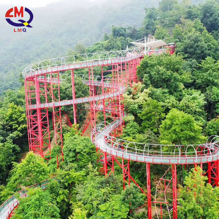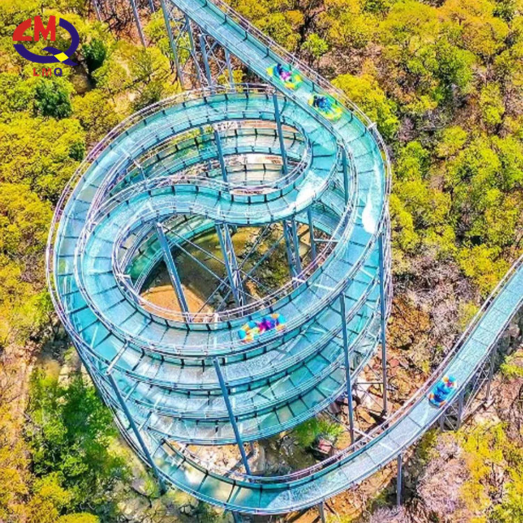 Grand toboggan aquatique en verre long dérivant dans les airs sur la montagne montagnes russes toboggan de parc aquatique en verre