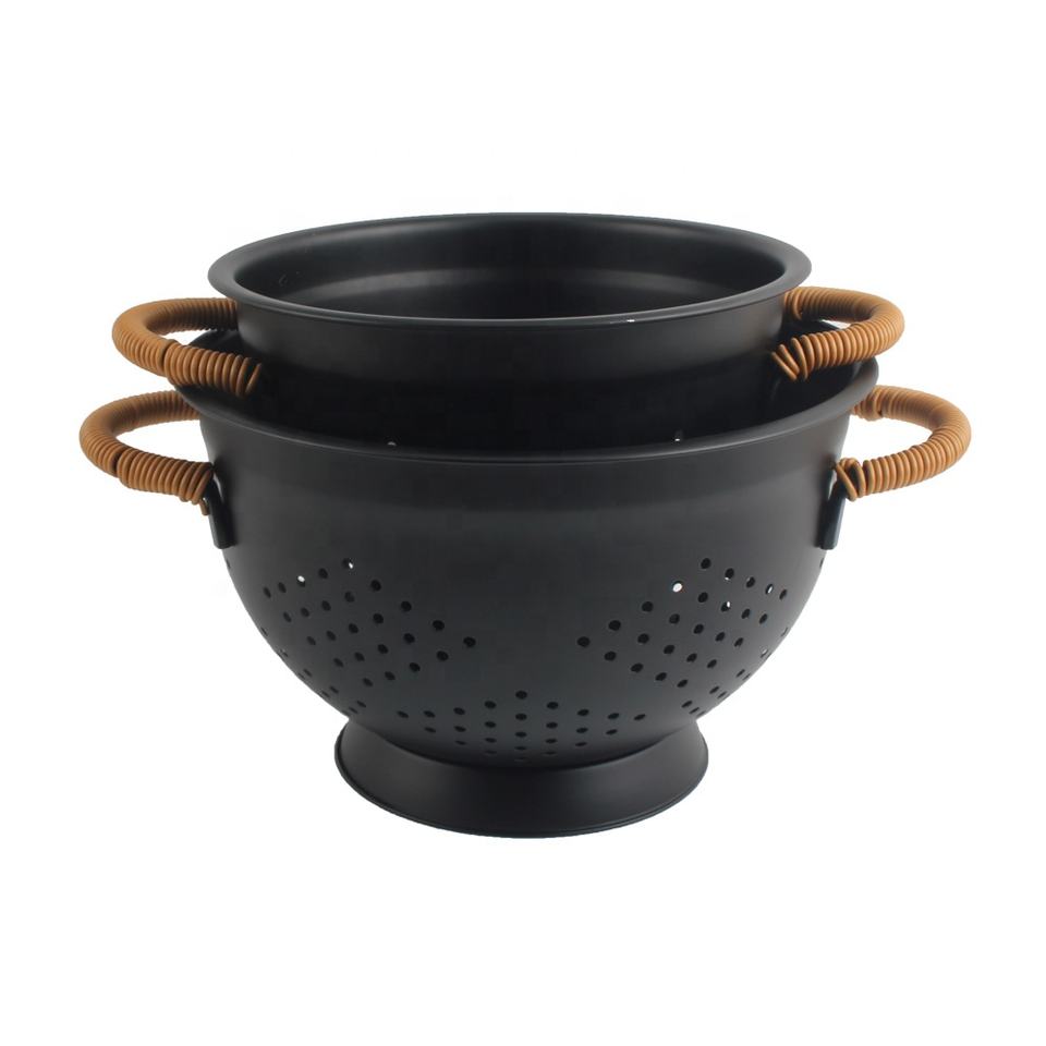 Grande passoire en métal avec manche en bois, passoire de cuisine auto-drainante à base solide avec revêtement en poudre