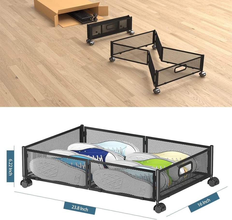 Grand Organisateur de Rangement pour Chaussures en Métal Pliable et Gain de Place, à Roulettes, à Placer Sous le Lit