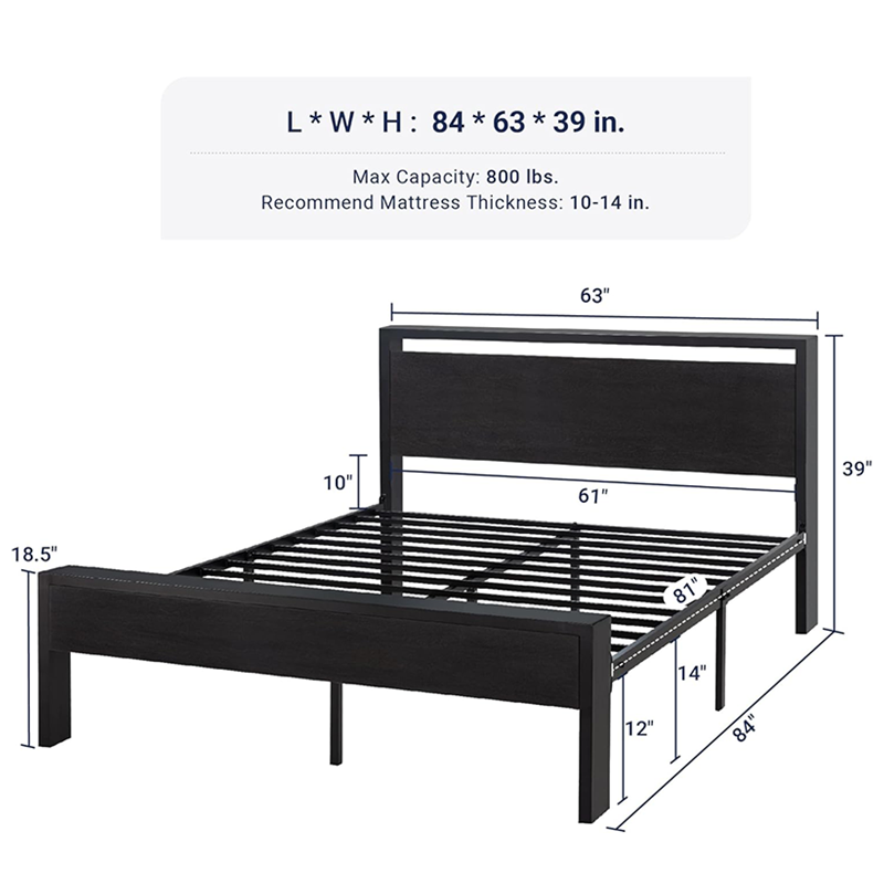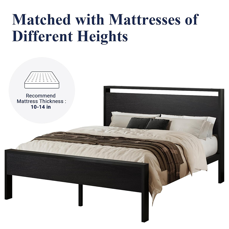 Grande plateforme de lit en métal avec tête et pied de lit en bois, sommier, ne nécessite pas de matelas à ressorts