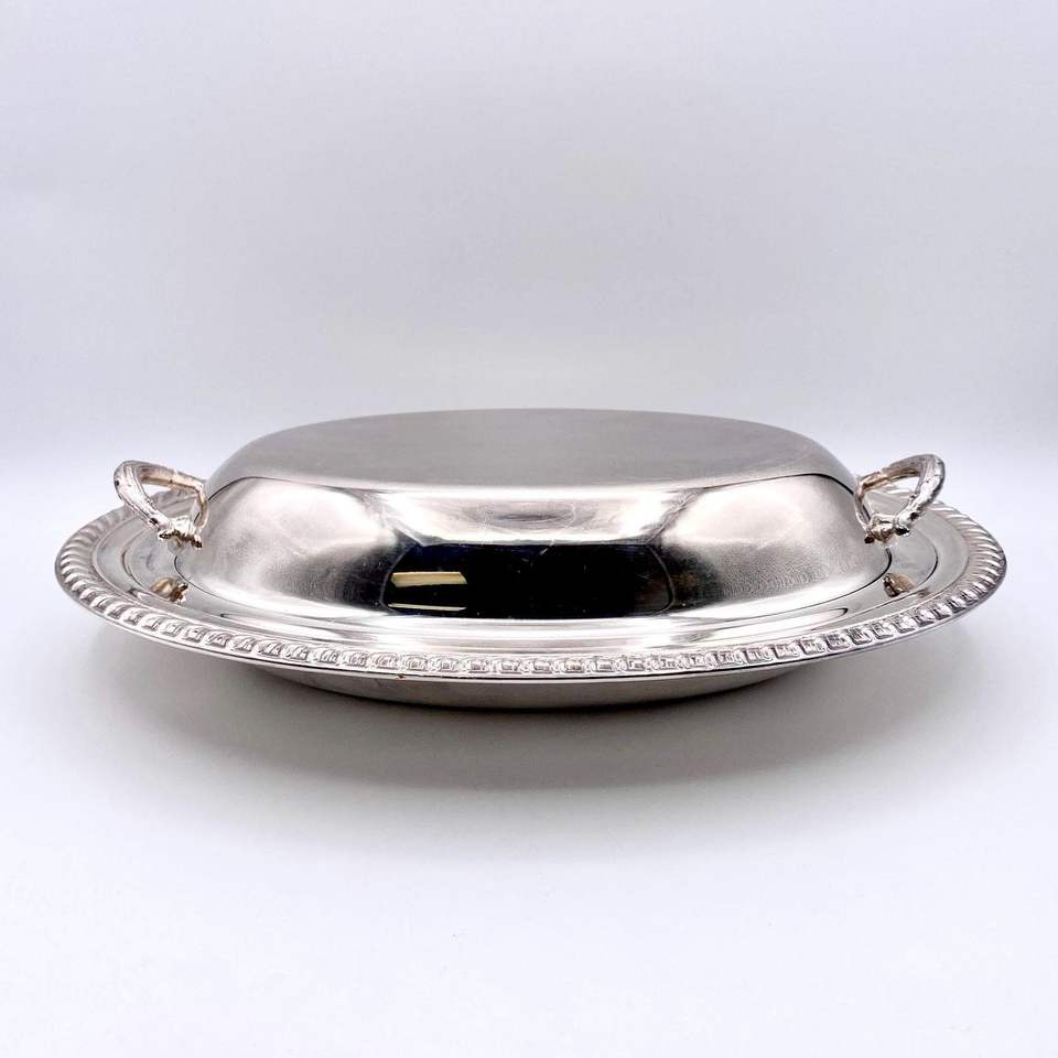 Grand plat de service en métal avec base large, parfait pour servir de grandes portions lors de fêtes, mariages et célébrations festives