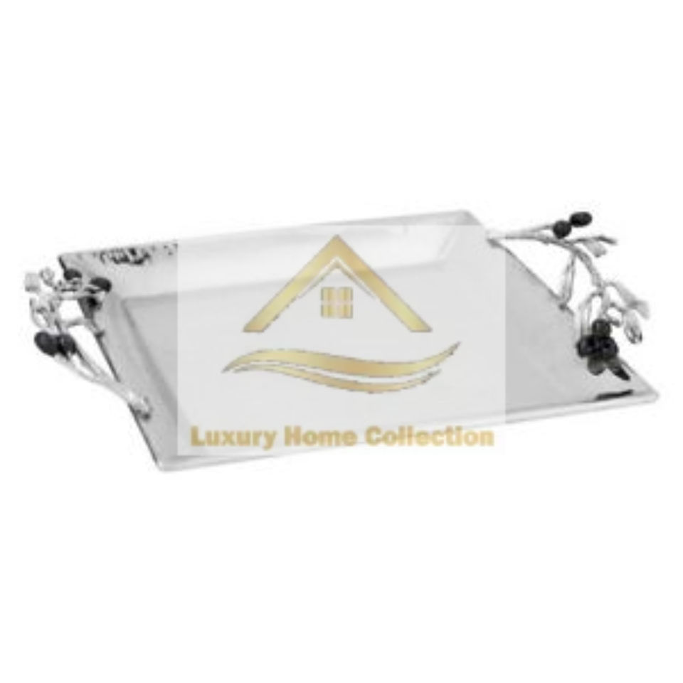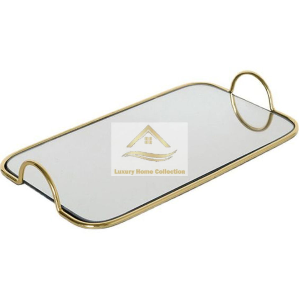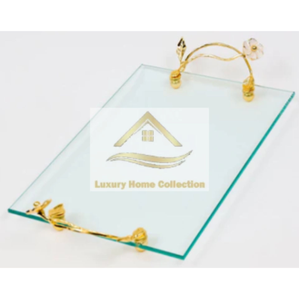 Grand plateau de service en métal et en verre Bordures et poignées de couleur or Plateau de service d'articles alimentaires de créateur merveilleux pour les restaurants