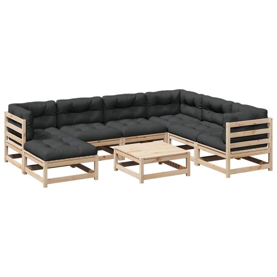 Grand ensemble de canapés modulaires de jardin en pin massif gris, mobilier d'extérieur élégant
