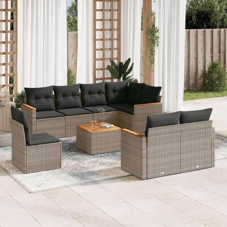 Grand ensemble de canapés de jardin modulaires en rotin PE gris, collection de meubles d'extérieur haut de gamme