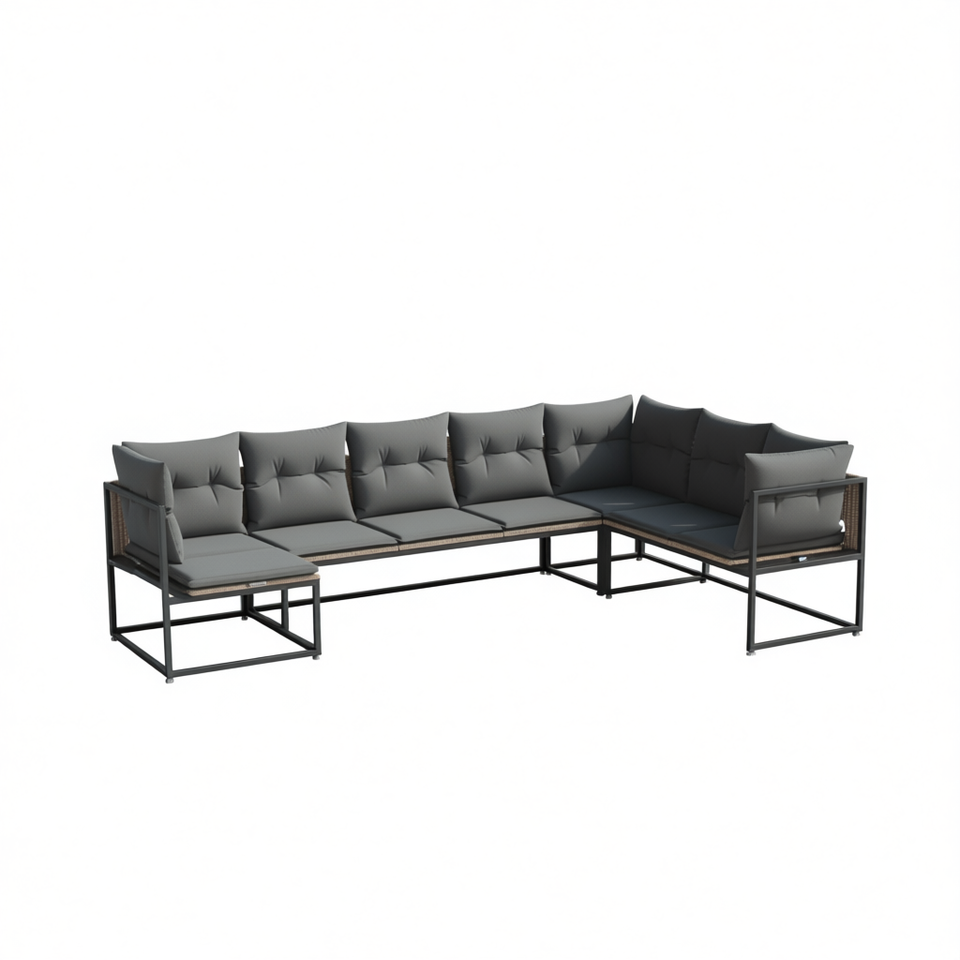 Ensemble de canapés de jardin modulaires en polyrotin gris, structure en acier, mobilier d'extérieur moderne, 6 places