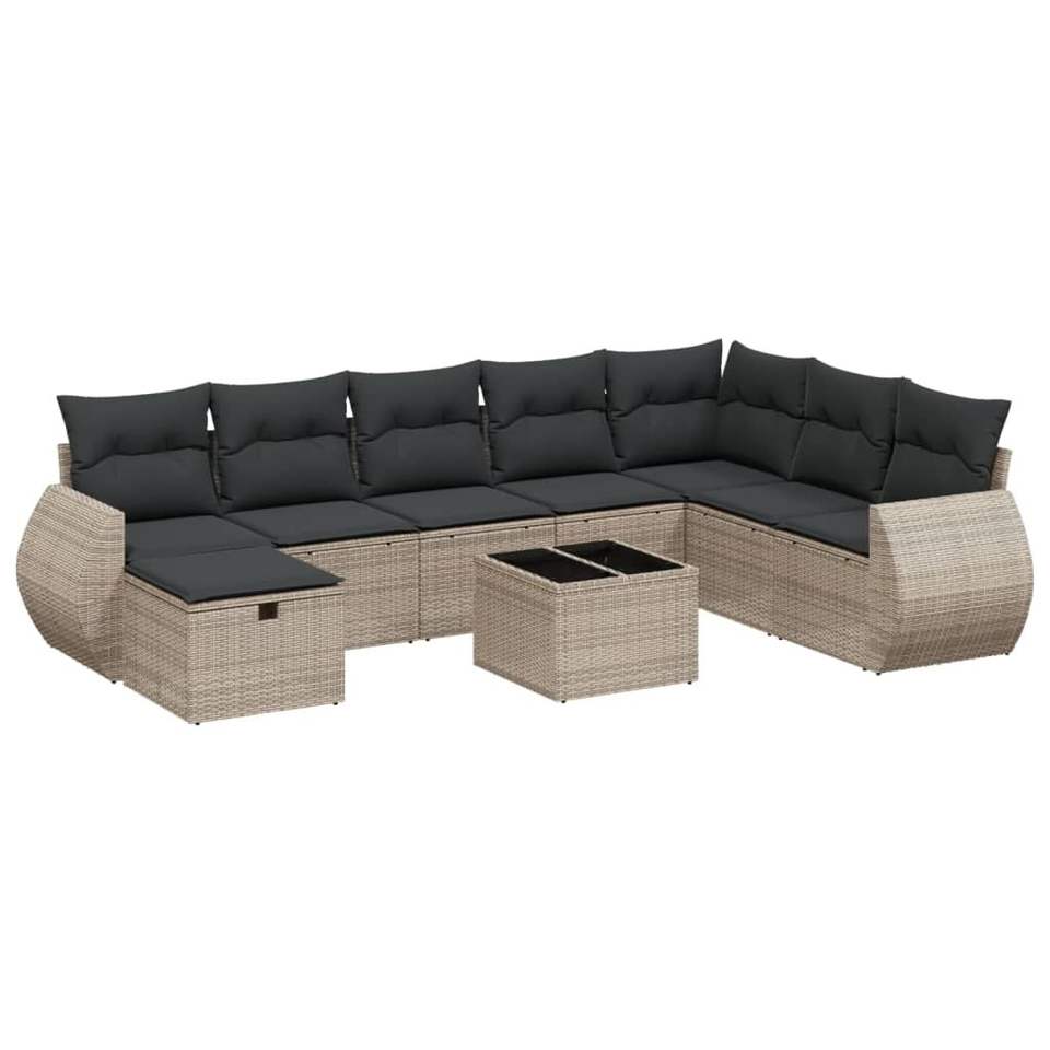 Grand ensemble de canapés de jardin modulaires en polyrotin gris, collection de meubles d'extérieur haut de gamme