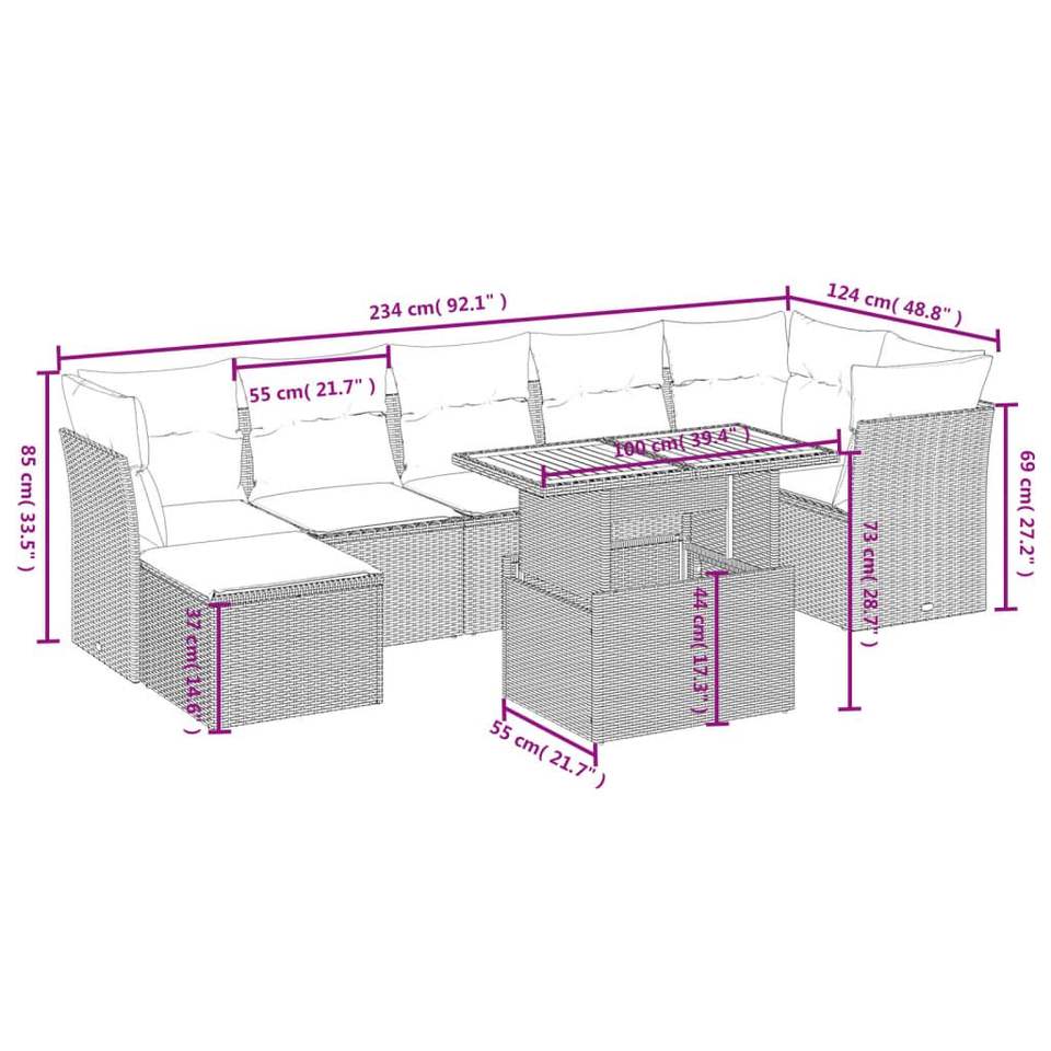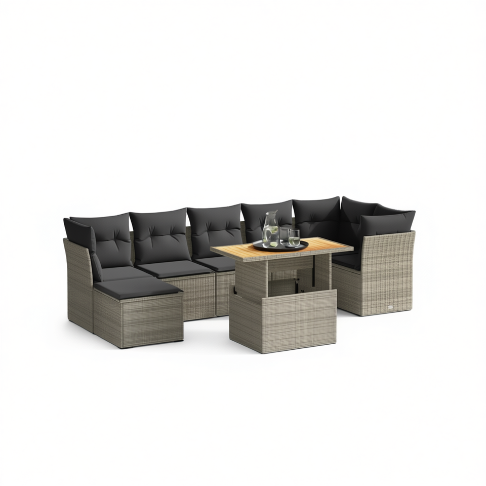 Ensemble de canapés de jardin modulaires en rotin gris, 6 places, mobilier d'extérieur, design contemporain, résistant aux intempéries