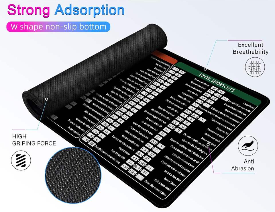Grand tapis de souris XL pour bureau, tapis de souris étendu pour ordinateur/planche de travail, bords cousus, Word/Excel/PPT (800x300x3mm)
