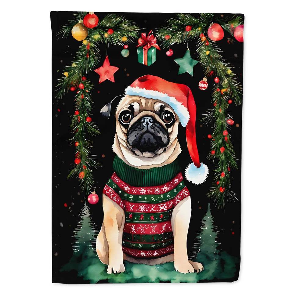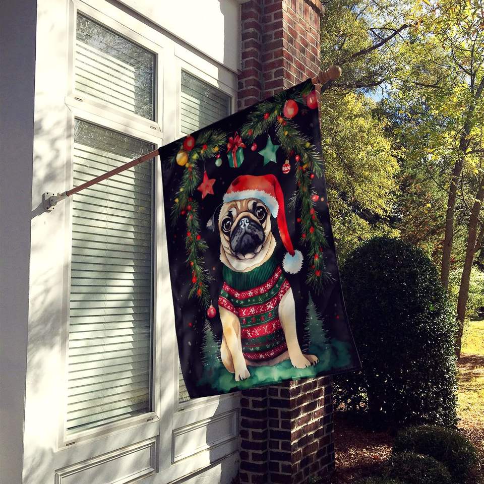 Grand drapeau de maison de Noël en Polyester multicolore Carlin Bannière de cour décorative Illustration pour porche Tenture murale avec manche