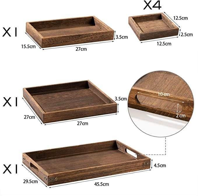 Grand plateau de service en bois durable, design moderne et antique, couleur naturelle, pour servir des boissons, des desserts, des aliments lors de fêtes et d'événements