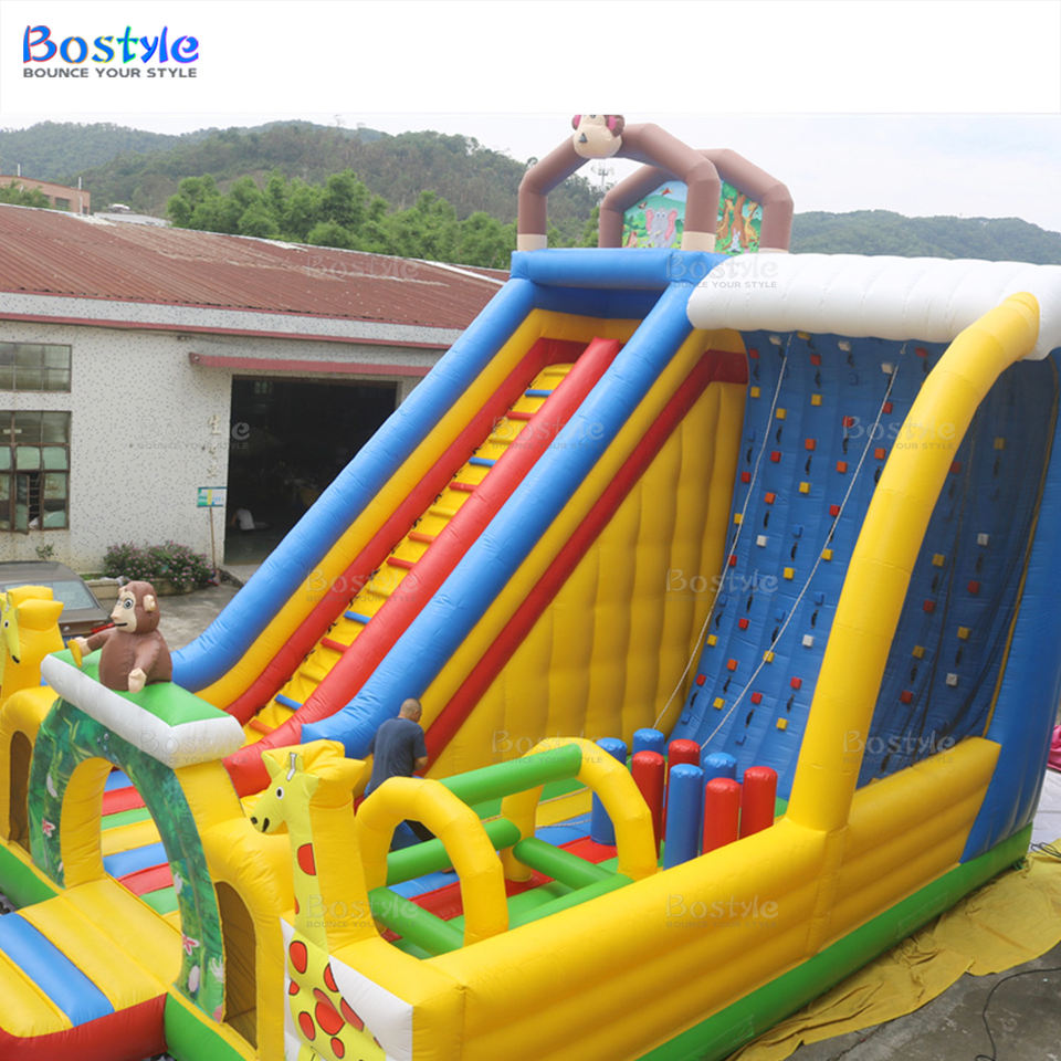 Grand château gonflable commercial extérieur Parc à thème pour animaux Toboggan sec et maison de rebond d'escalade
