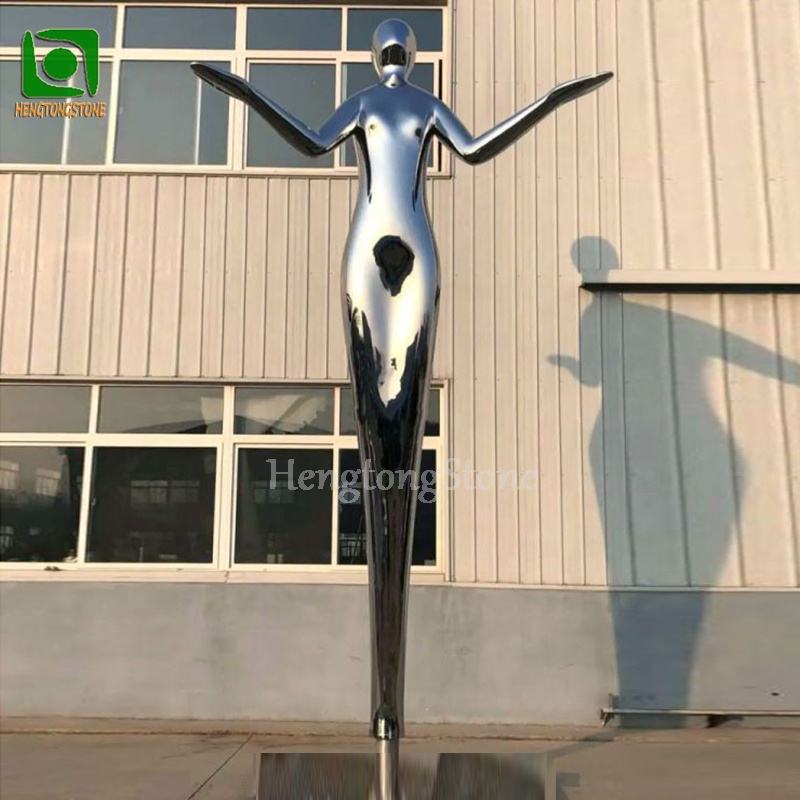 Large Outdoor Decorative Mirror Polished 304 Stainless Steel Cetacean With Elf Sculpture Metal Animal Statue