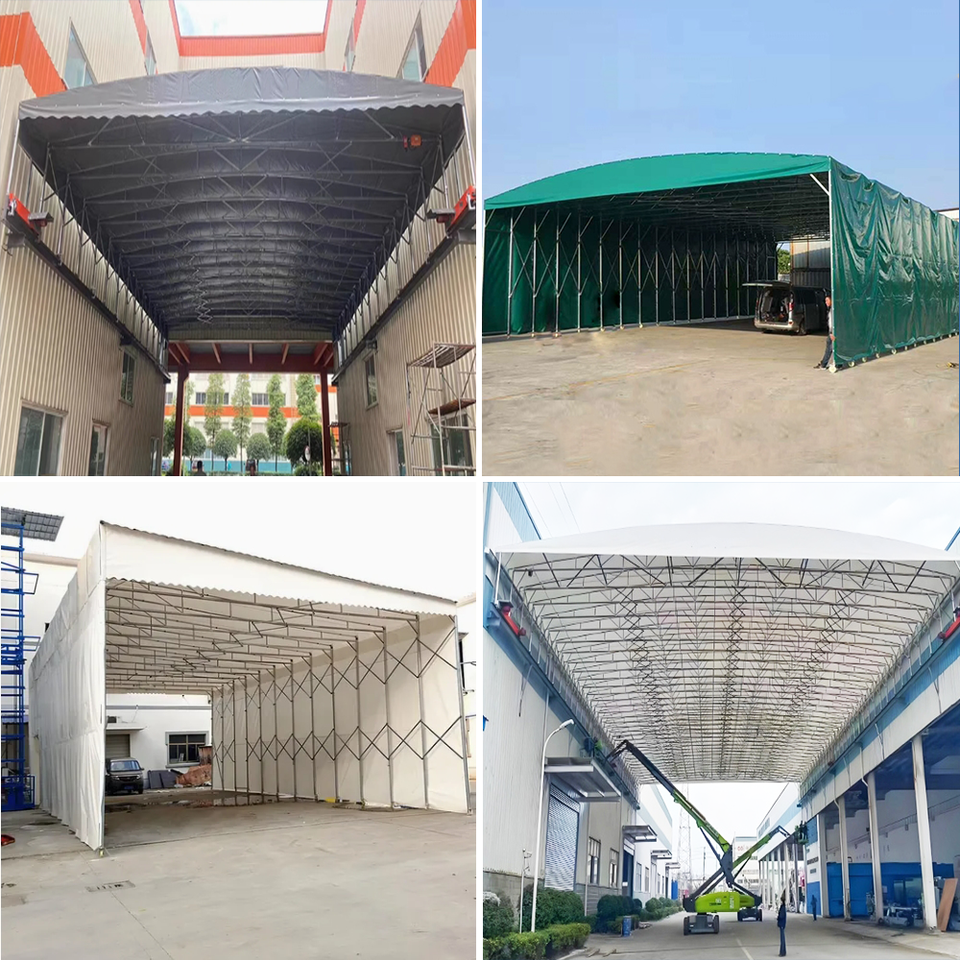 Grande tente mobile rétractable électrique d'extérieur avec auvent pliable à cadre en métal design push-pull pour événement