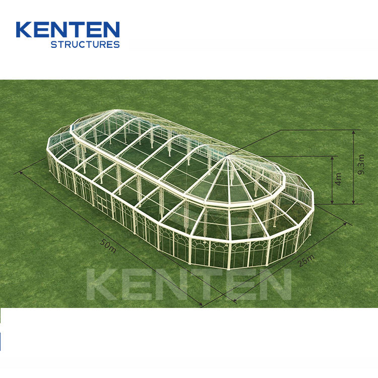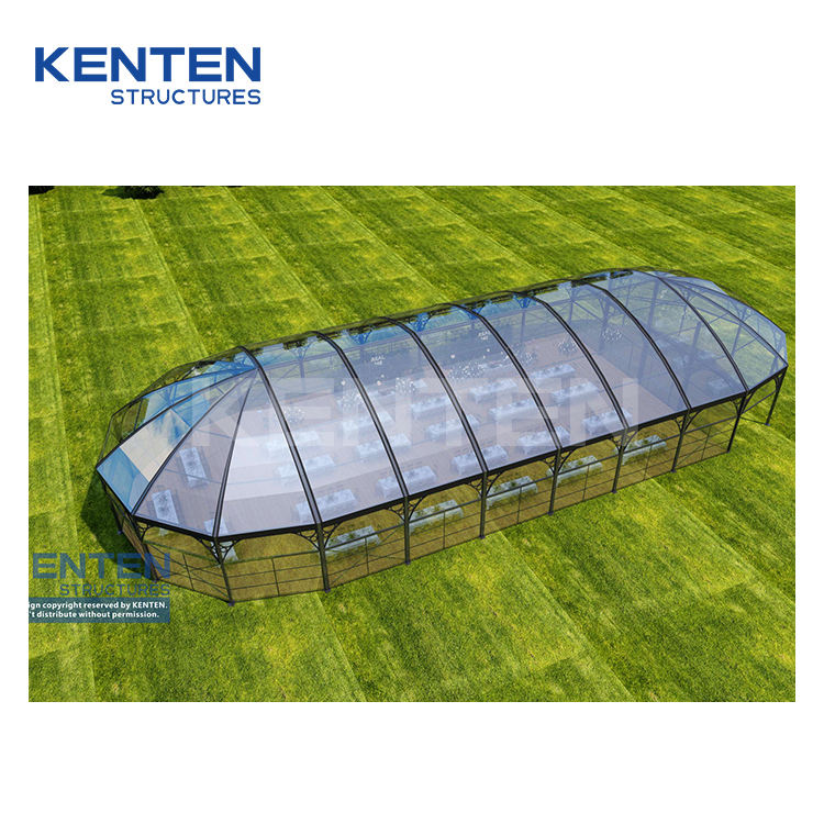 Grand cadre extérieur pergola de mariage transparente commerciale chapiteau en verre à courbes claires tentes d'événement noires avec portes en verre