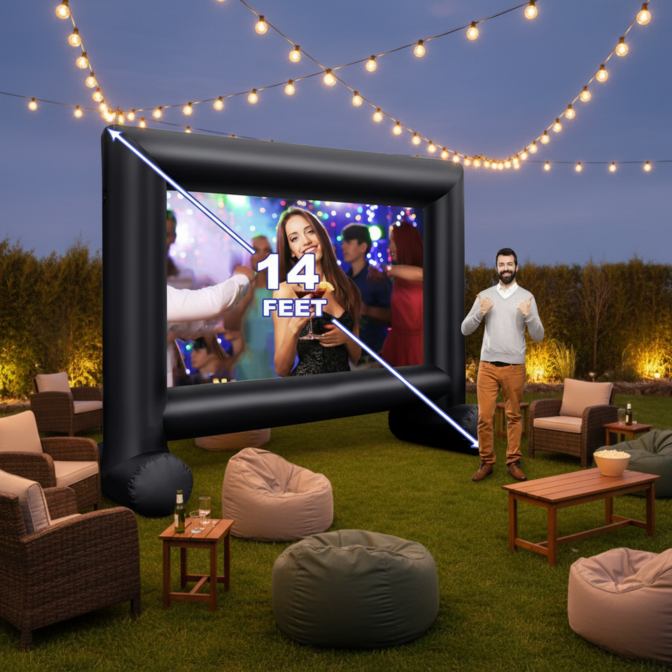 Grand écran de cinéma gonflable d'extérieur avec un design de cadre de dessin animé pour la projection de films, la publicité et les événements en plein air