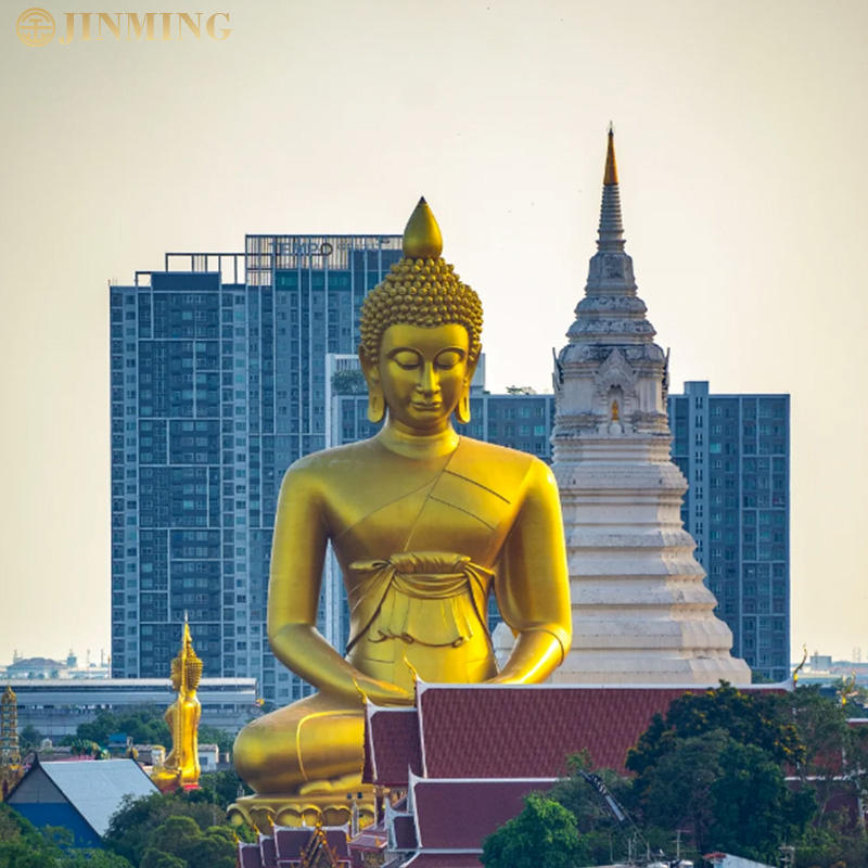 Grande statue de bouddha bouddhiste dorée grandeur nature en plein air bouddha thaïlandais statue assise en bronze coulé produit d'artisanat en métal