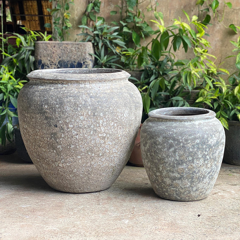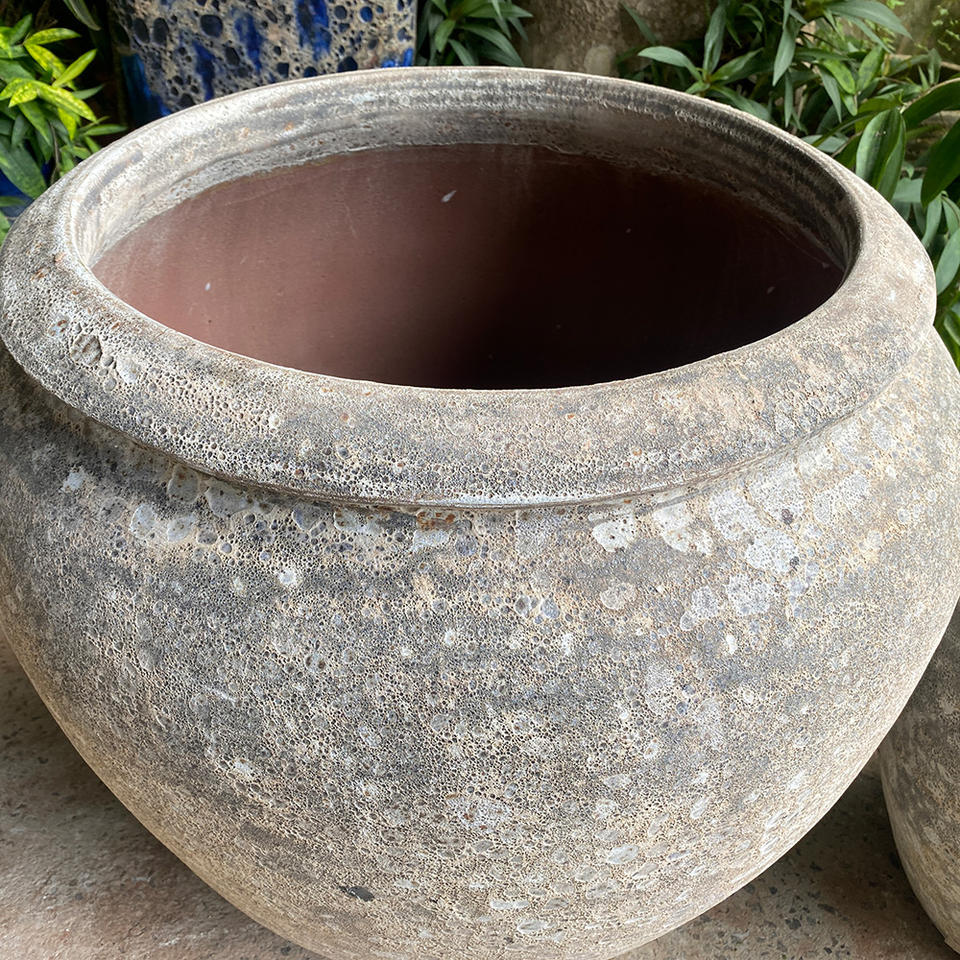 Grande jardinière d'extérieur avec texture de style bouillant, pot en céramique fait à la main finition rustique, vente en gros bon marché de l'usine OEM ODM