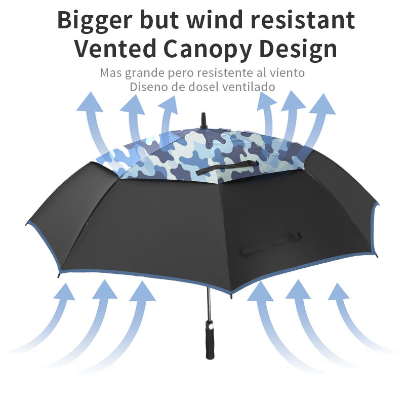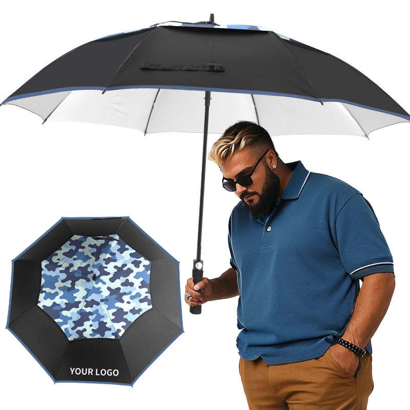 Grand parapluie de golf pour terrasse de 68 à 72 pouces avec protection solaire UPF 50+ et couche intérieure argentée