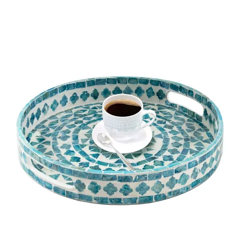 Grand plateau personnalisé en bois et MDF pour la maison et l'hôtel Plateau de service en incrustation d'os Plateau de service alimentaire à un prix