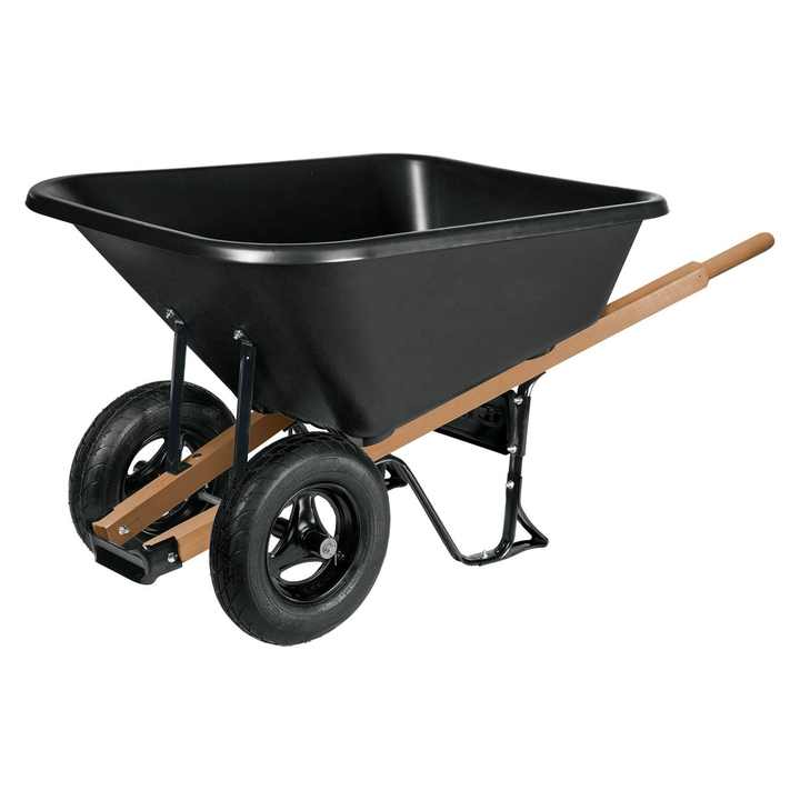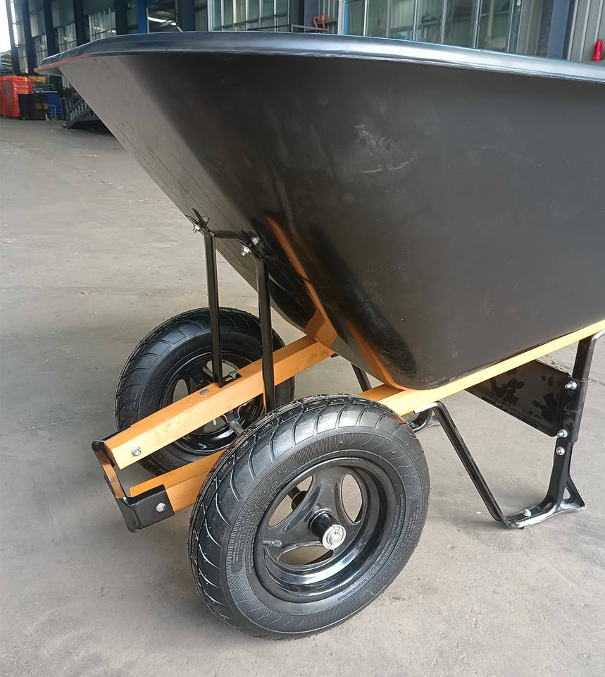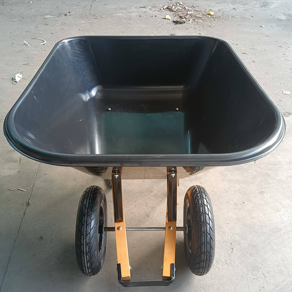 Brouette à grande benne en plastique avec roue pneumatique double 10 pouces (4.80/4.00-8) et poignée en bois