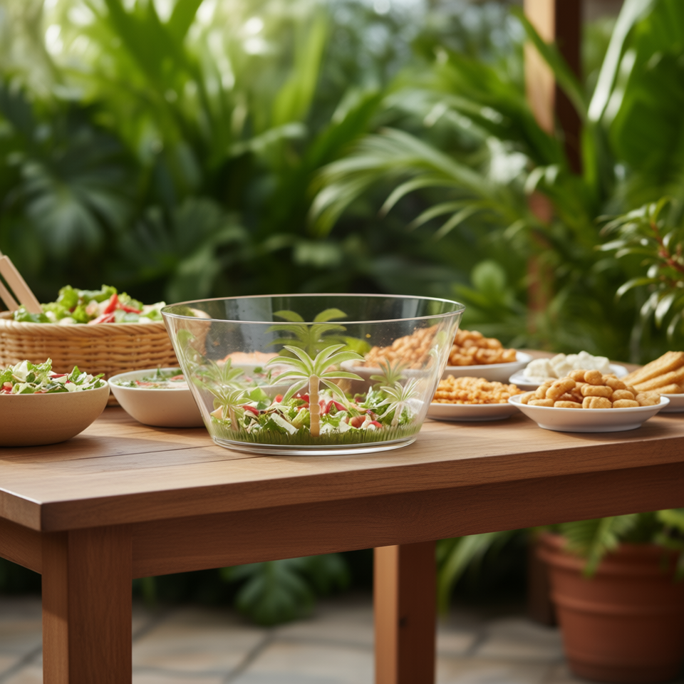 Grand saladier en plastique motif palmier sans BPA pour fêtes, collations, salades, soupes, céréales