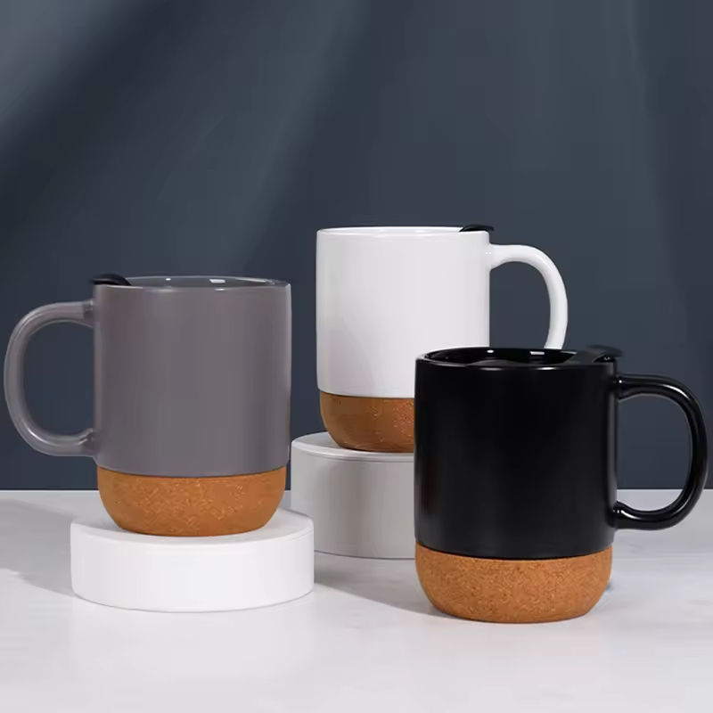 Grande tasse à café en porcelaine écologique avec couvercle anti-déversement, base en liège, couleur et logo personnalisables, réutilisable, grande capacité, idéale pour le camping