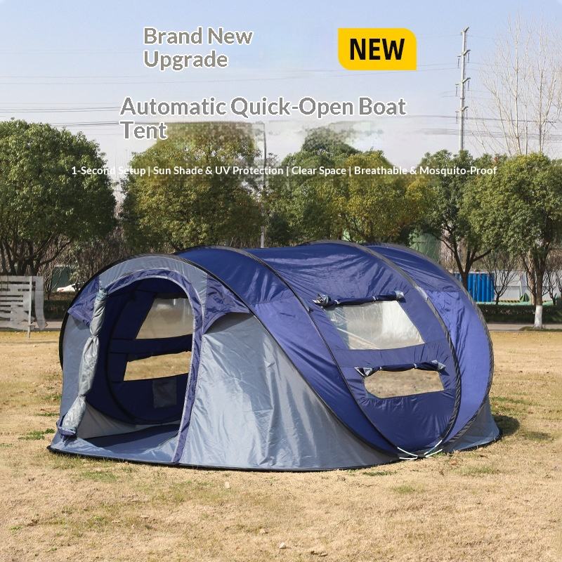 Grande tente de camping automatique portable en forme de bateau avec une chambre, imperméable et résistante aux UV, capacité 4-5 personnes