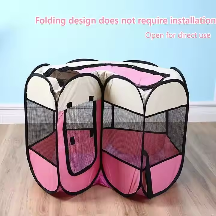 Grande tente extérieure portable pour animaux de compagnie Huit panneaux octogone chat Cage chien clôture motif animal moderne comprend un sac de transport pour les petits