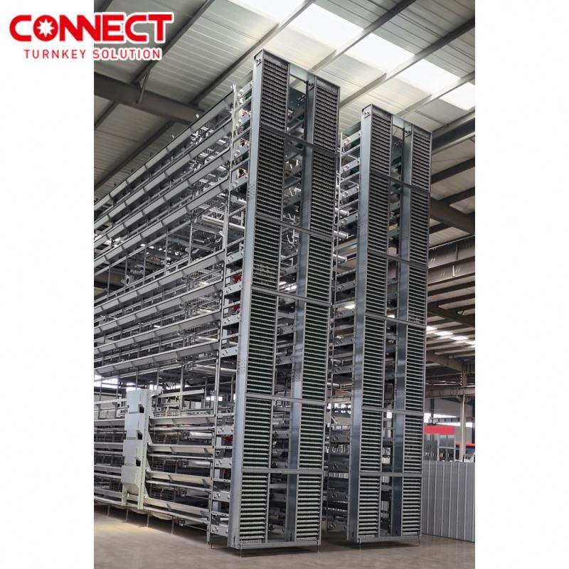 Grande Cage de Batterie Avicole de Type H pour Équipement d'Élevage de Poulets de Chair et Poules Pondeuses à 3/4/5/6/8 Niveaux avec Système de Collecte des Œufs