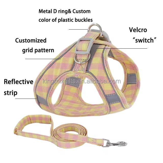 Harnais pour chien 100% coton, grande capacité de production, design personnalisé à motif quadrillé, XXS, réfléchissant, anti-traction