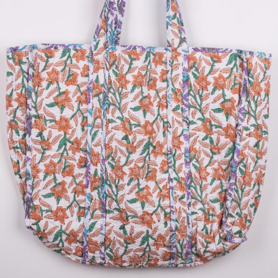 Grands sacs cabas en coton matelassé personnalisés à la mode sacs à main de voyage cabas en coton pour femmes sac à bandoulière réversible à imprimé floral