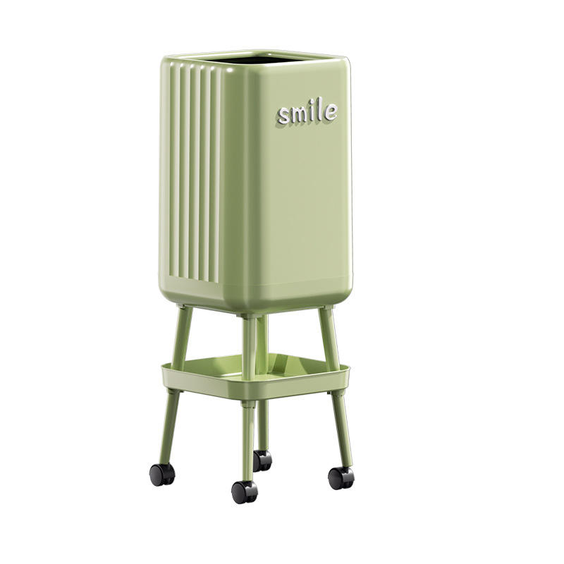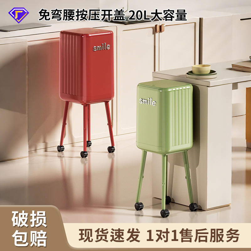 Poubelle de cuisine rectangulaire grande capacité avec couvercle et roulettes, pour usage intérieur, design souriant