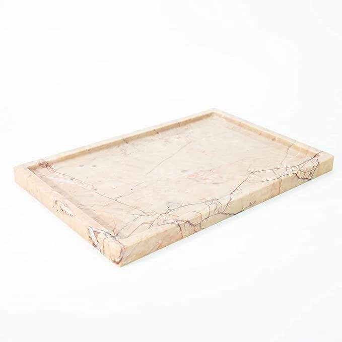 Grand plateau de service rectangulaire en marbre avec construction robuste et bords surélevés pour un transport sûr des boissons, des collations et des desserts