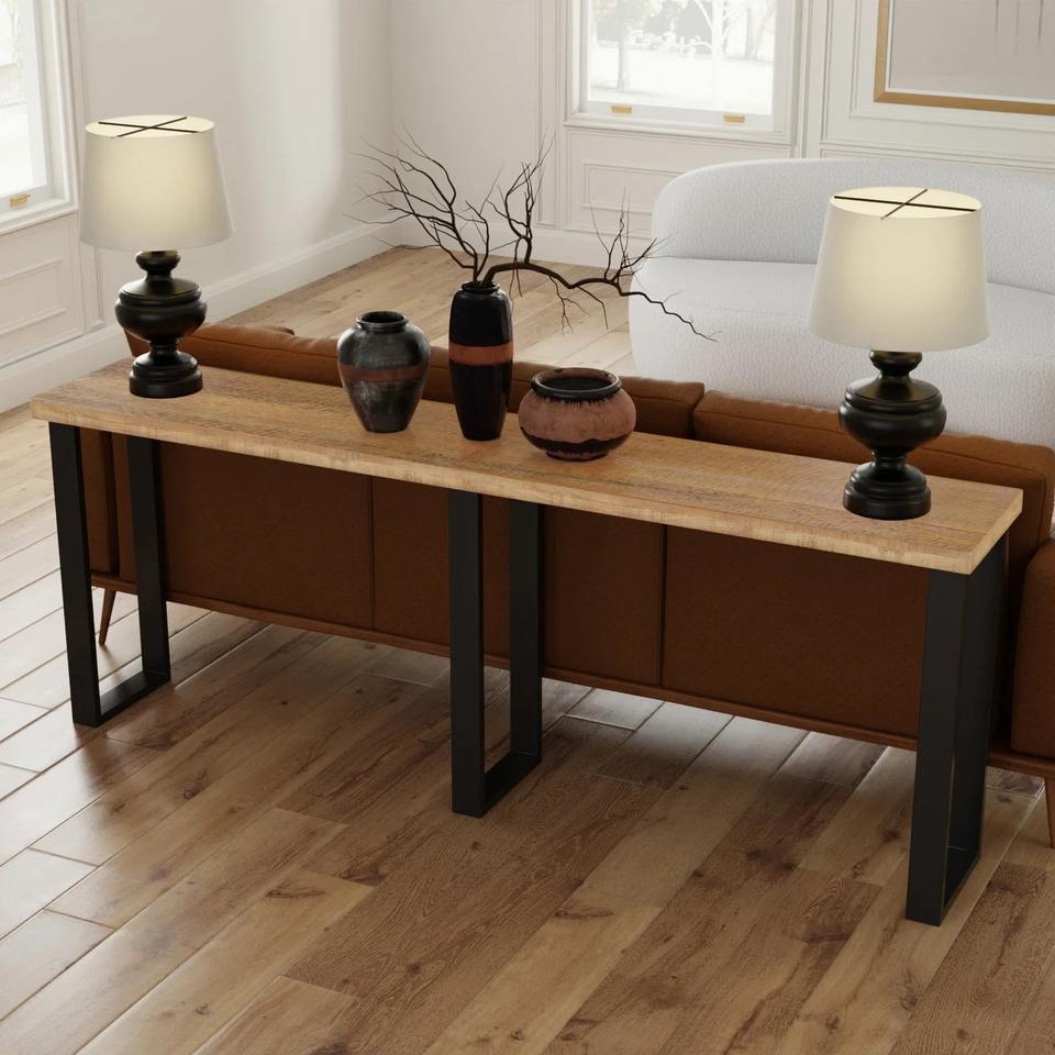 Grande table console rectangulaire moderne pour couloir, avec des lignes épurées et un cadre en fer robuste, pour la décoration de salon et de la maison