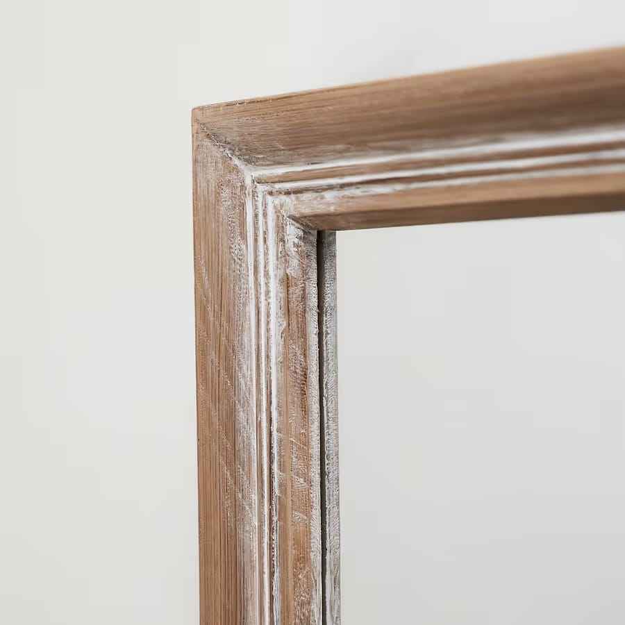 Grand miroir rectangulaire en teck de style fenêtre avec cadre à grille pour décoration intérieure rustique, moderne ou de ferme